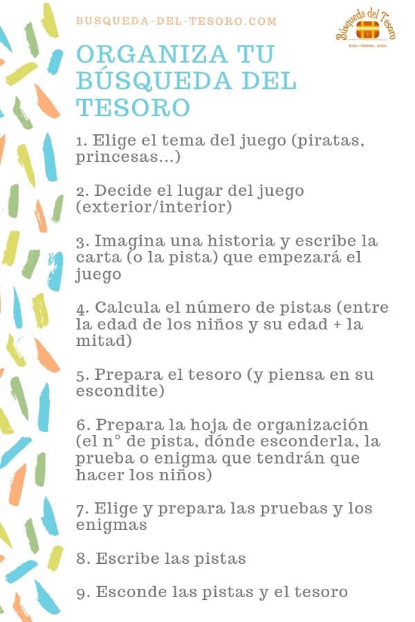 La búsqueda del tesoro es un juego en el que los niños son los héroes de la acción, por eso les encanta. Tienen que superar pruebas y seguir una serie de pistas que los llevarán a descubrir el tesoro. Puede parecer complicado organizar una búsqueda del tesoro, sobre todo al principio. Pero la verdad es que con un poco de imaginación y de tiempo todo el mundo puede organizar una. Aquí te explicamos paso a paso cómo organizar una búsqueda del tesoro en 10 etapas. ¡Esperamos que nuestros consejos te sean útiles para tu próxima fiesta temática!