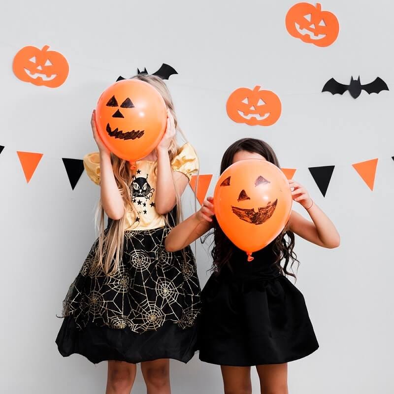 Para este juego de Halloween necesitarás globos de color naranja (que serán las “calabazas”). Si quieres puedes dibujarles caras, pero no es necesario.
