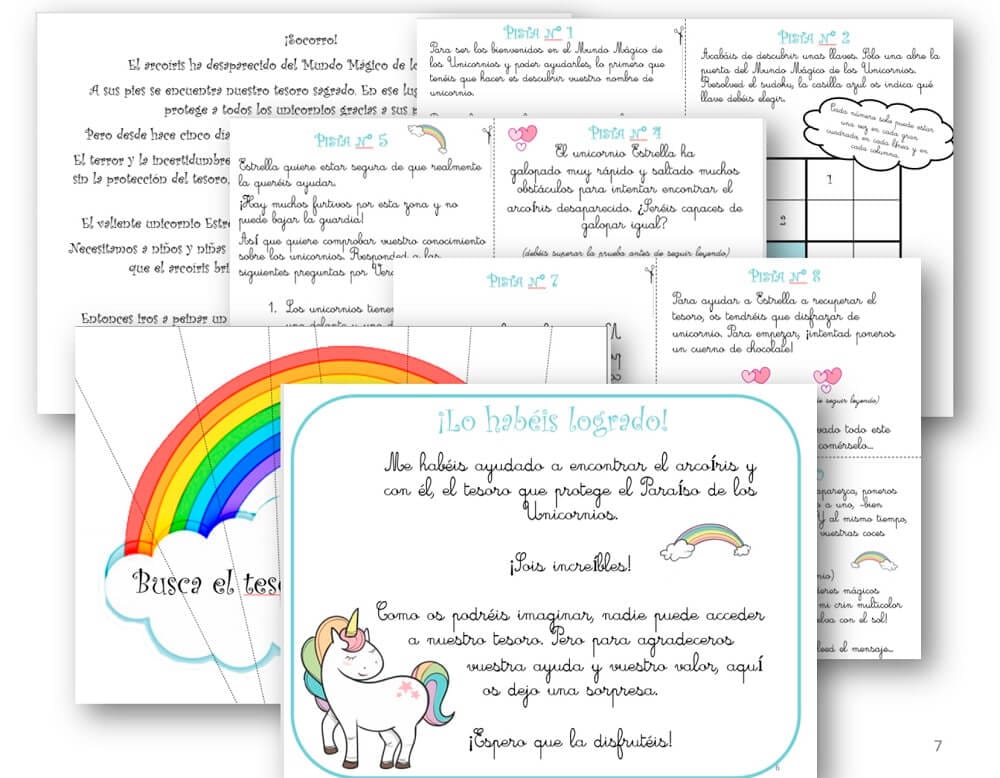 «El unicornio desaparecido” es un juego de unicornios tipo búsqueda del tesoro listo para usar. Está pensado para jugar con niños de 6 a 8 años en el interior. El número de jugadores ideal es entre 1 y 6 niños, aunque si hay más puedes hacer varios grupos.