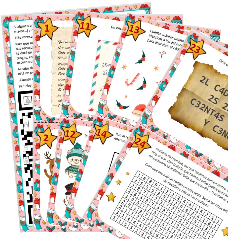 Los enigmas están pensados para niños de entre 7 y 14 años. Es un calendario muy fácil de organizar y los niños disfrutarán mucho con la búsqueda.